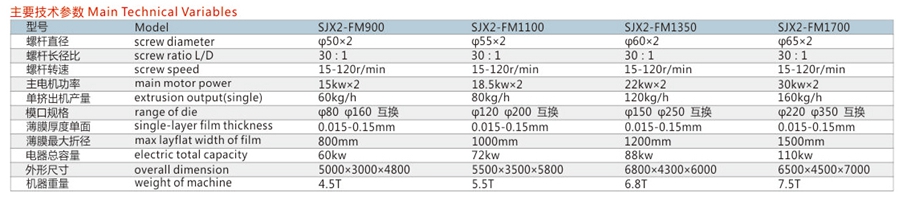 該機采用先進的連續旋轉機頭,制品平整,均勻度好,保證了包裝機,印刷機等后續工序設備對薄膜的質量要求,適合生產復合珠光膜,復合液體包裝膜,絕緣膜,多功能農用薄膜等。其運用范圍正在逐步擴大,是塑料制品開發的方向。