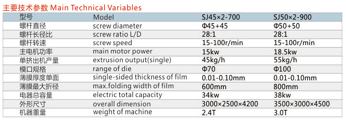 我廠生產的雙模頭彩條吹膜機組是由兩條螺桿料簡和一只模頭組合而成采用兩種母料配置吹制各種規格的彩條背心袋(采購袋)不需要印刷就能夠達到彩色化具有色彩鮮艷、線條均勻、結構合理、工藝先進、收卷平整、生產量高等特點,