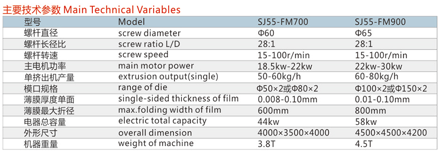 SJ55- FM600 SJ60-FM700 SJ65-FM900雙機頭吹膜機組